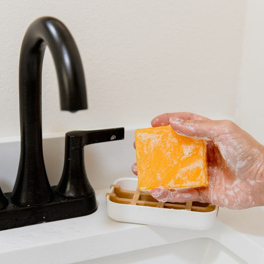 Created to pair with our #1 best selling Shampoo and Conditioner Bar, our Zero Waste Soap Bar is not only incredible for skin but it is also truly zero waste! This dreamy smelling bar is made with essential oil extracts and combined with left over, house-made glycerin from our beloved shampoo and conditioner bars. Non-toxic, non-allergic, and with a neutral PH, glycerin is a liquid humectant that gently cleanses while also locking in moisture ensuring skin is soft and supple and never tight or dry. *Bonus* Our natural formula does double duty as the perfect barrier for a clean smooth shave!