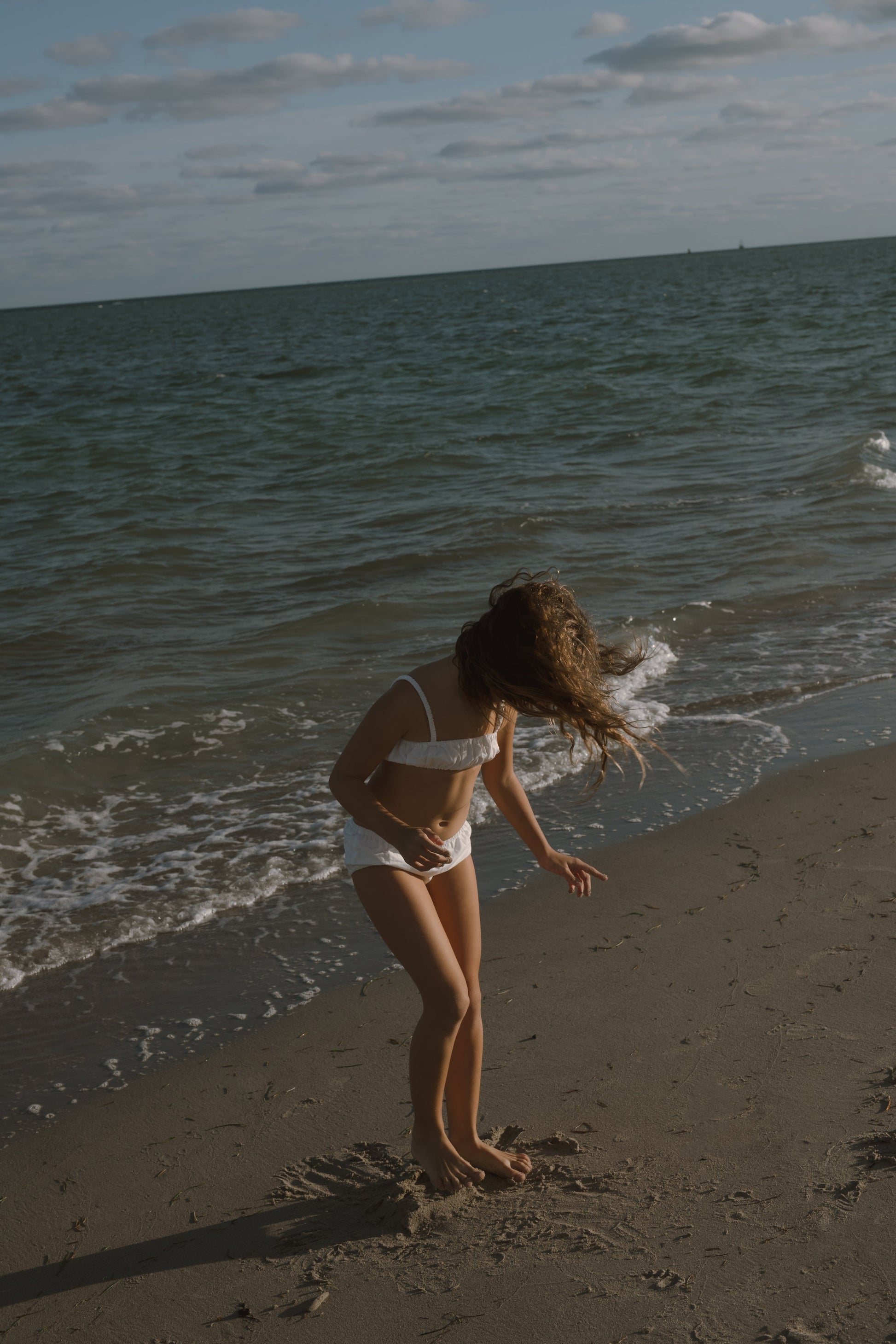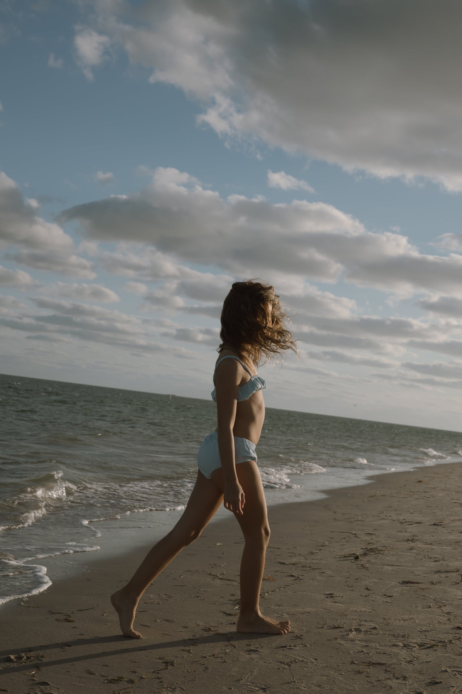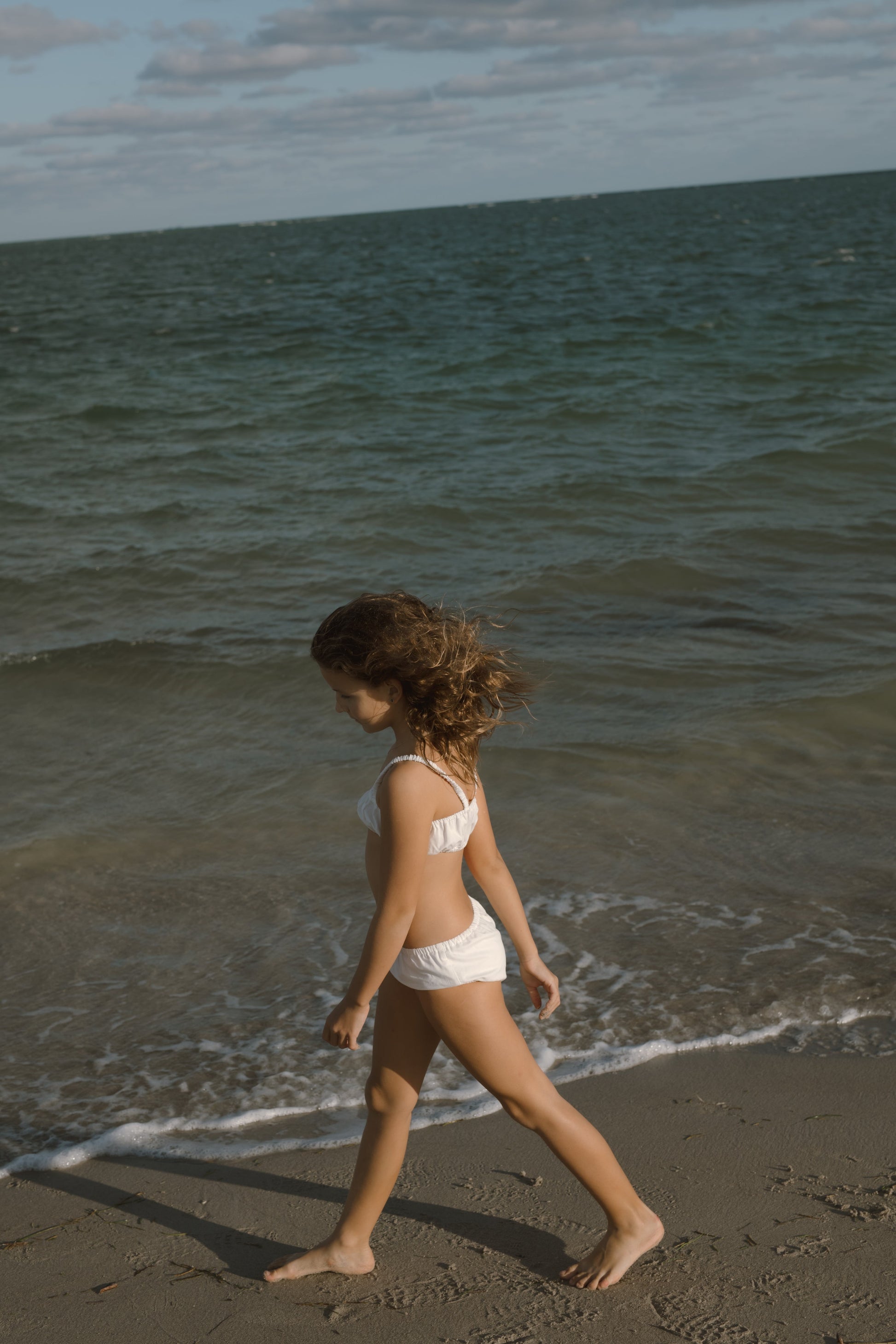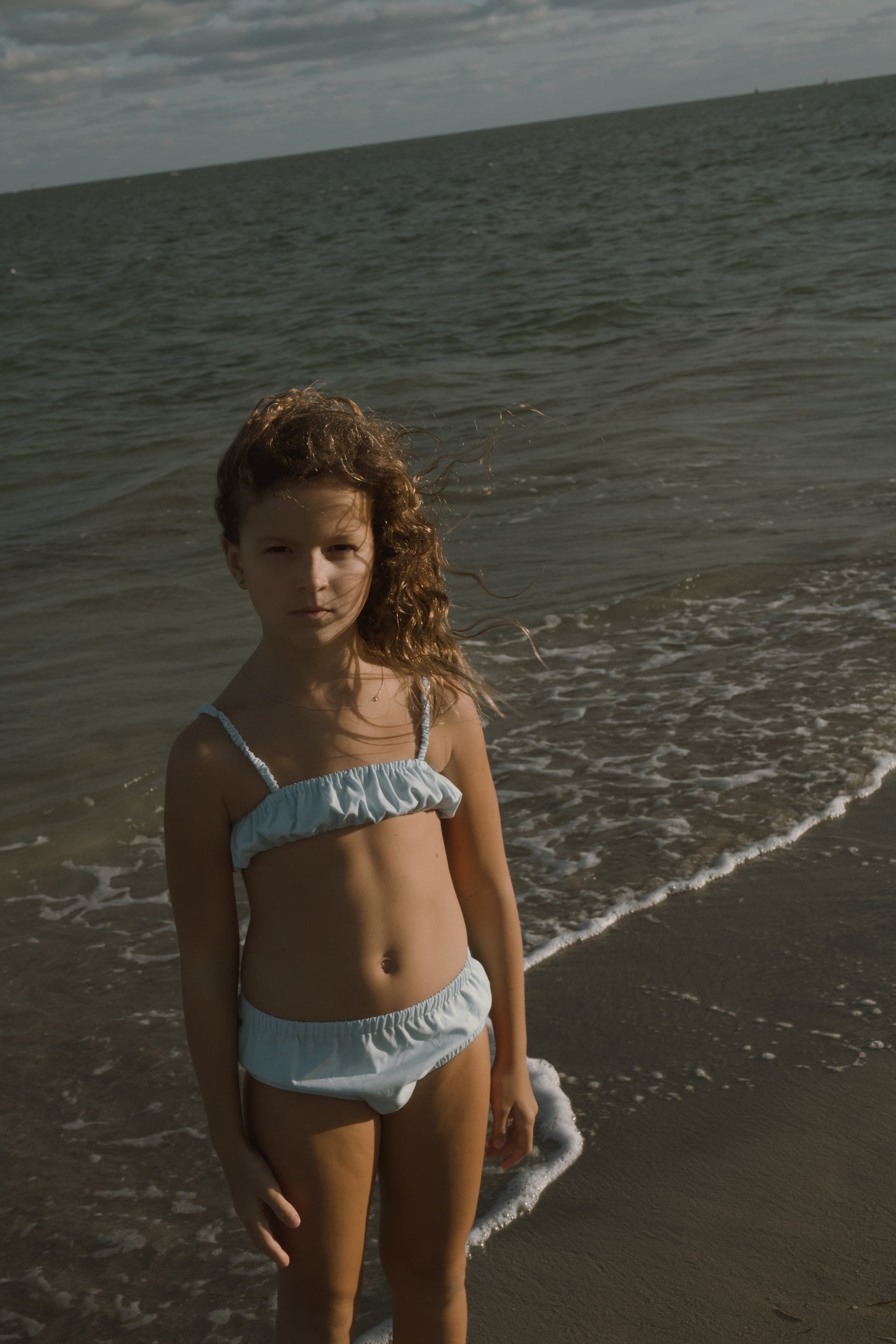 The Layla set is a ruched tube top with scrunched straps to accommodate multiple body lengths. Lacking any hardware, the top is comfortable enough to sleep in and play. The bloomers have soft elastic at the waist and leg openings.